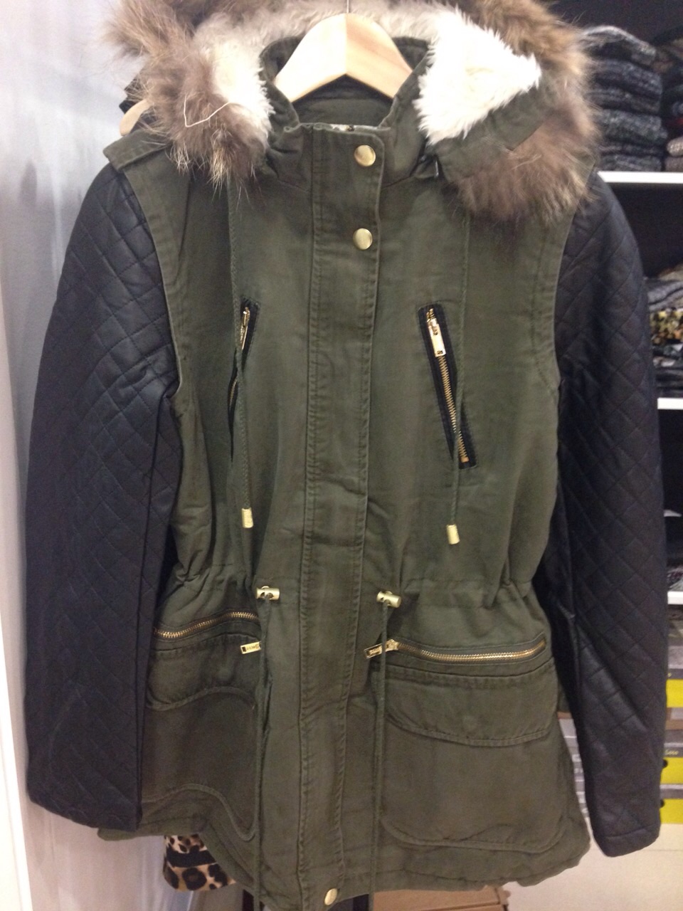 Abric marró. Talles S-XLL Abric verd amb cremalleres daurada.